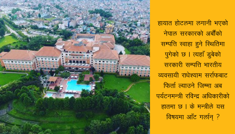 पुगे । तर, त्यो हायात होटल यस्तो हो, जहाँ दुई दशकदेखि नेपाल सरकारको ठूलो